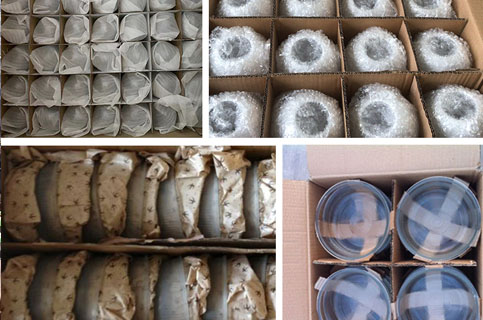 For machine pressed glass , which is heavy . we pack each glass shade by bubble bag and seperate each one by cardboard , some pieces pressed glass into one carton . then pack them by wooden pallet or wooden box .